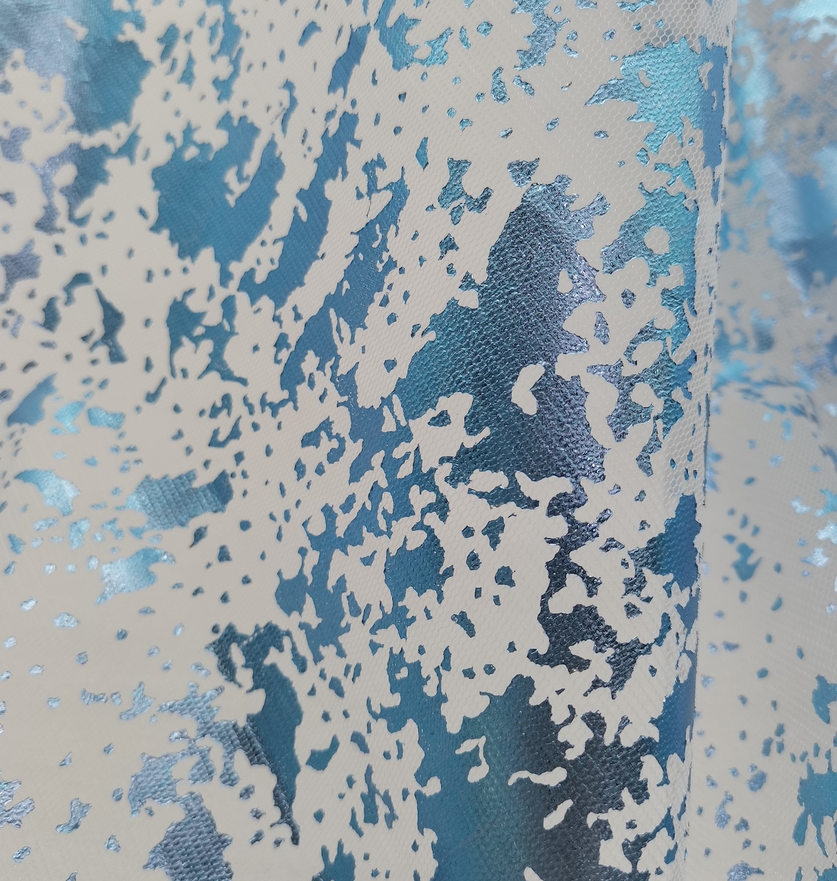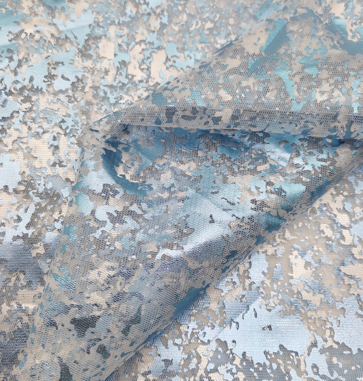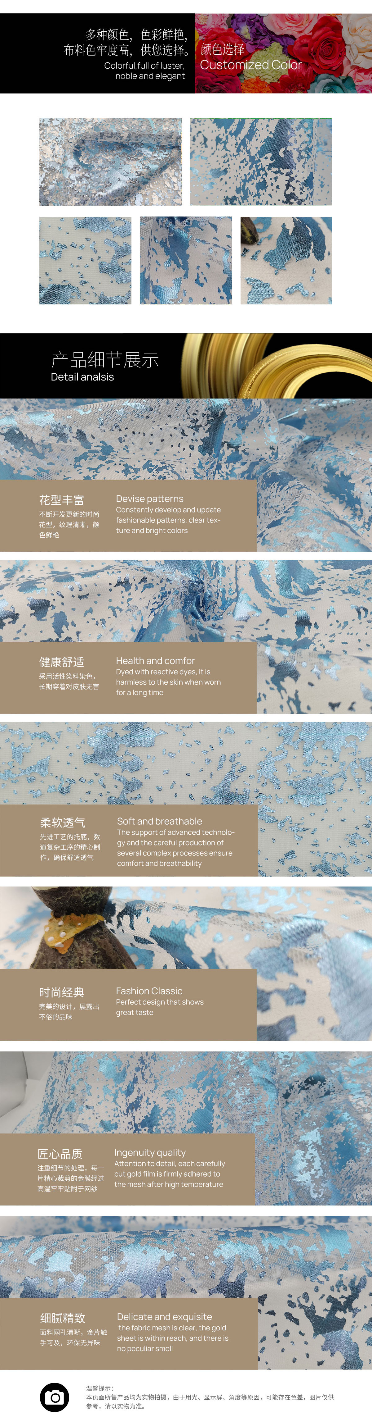 品名:滌加強網(wǎng)燙金藍塊狀雪花